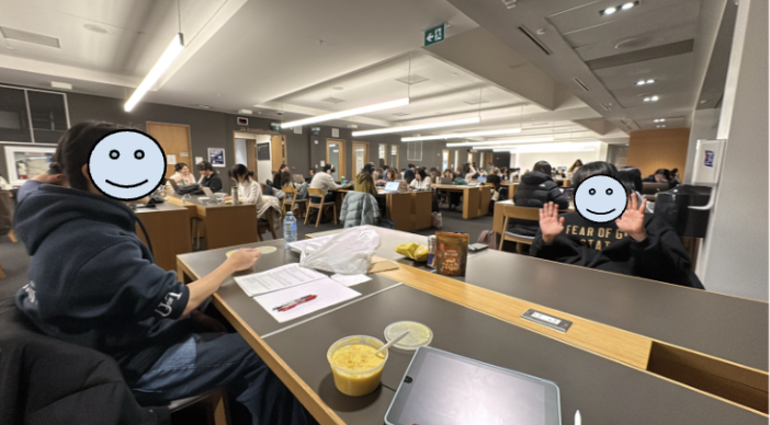 テスト期間は図書館は24時間開いていますが、Commonという飲食会話OKのエリア以外は夜11時に閉まります。私は10時半頃には個室からCommonに移動するようにしています。